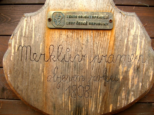 „ V jarních měsících r 1963 bylo započato s bouráním budov na bývalém výletním místě Merkovce. Rozbourán domek č. 120, kde býval byt hajného. Kámen z toho domku byl rozvezen na opravu lesních cest. Také rozbourán domek, bývalé to knížecí lázně. Tyto lázně byly upraveny na byt pro lesního dělníka. Rozbořením těchto budov ztrácí Merkovka na svém půvabu. Vše je nyní na Merkovce ve stavu desolátním. Pramen železité vody z kapličky dosud vytéká a vlévá se do blízkého rybníka, ve kterém bývaly ještě před dvaceti lety červené rybky. Marné volání, aby památné místo bylo zachováno, nenalézá porozumění. “